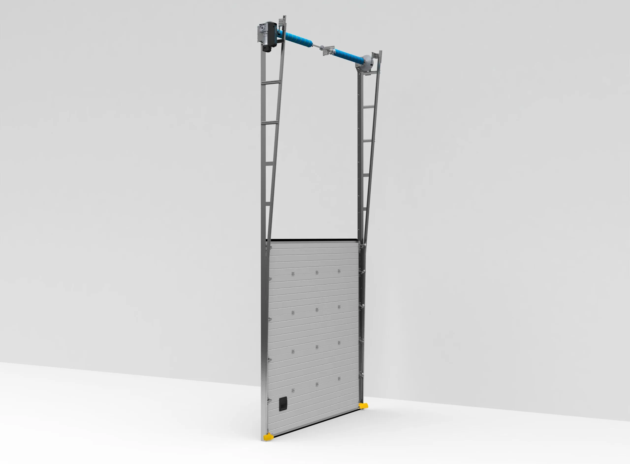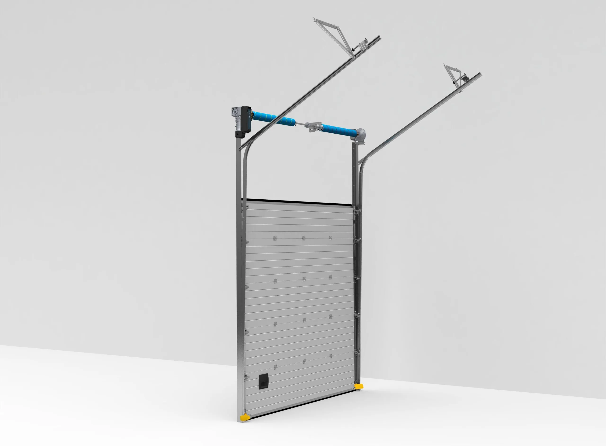 Sistem vertikalnog podizanja omogućava segmentnim vratima da se podižu direktno prema gore, bez horizontalnog vođenja, što oslobađa maksimalan prostor unutar objekta. Idealan je za objekte sa visokim plafonima, poput skladišta, proizvodnih hala i logističkih centara.